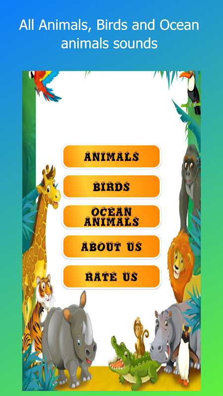 جميع الحيوانات والطيور والحيوانات المحيط الأصوات والصور في التطبيق واحد