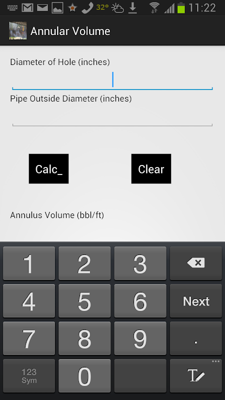 هذا التطبيق القليل بحساب حجم الحلقة بين حفرة وأحجام الأنابيب. كما أنها تعمل مع بت إلى سطح التطبيق لحساب من السكتات الدماغية.