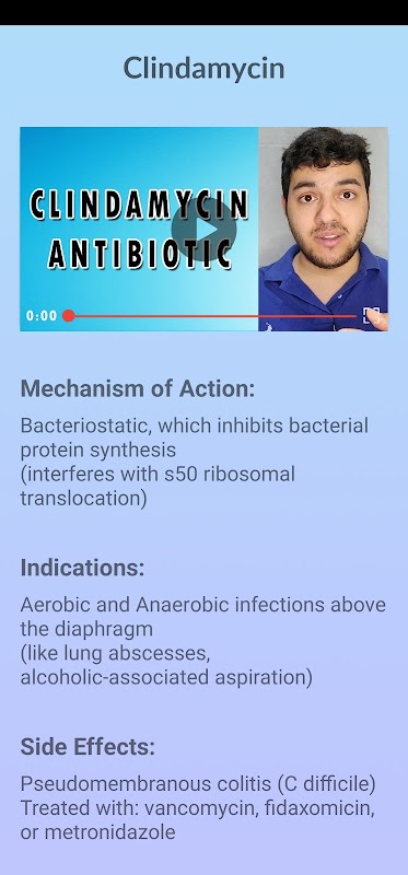 يحتوي كل مضاد حيوي على مقطع فيديو يشرح التفاصيل عالية الإنتاجية بطريقة قصيرة وسهلة الفهم.