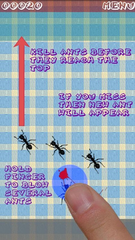 Try a TIME game mode. Ants run up where want. How many ants you will manage to kill before the time is over?