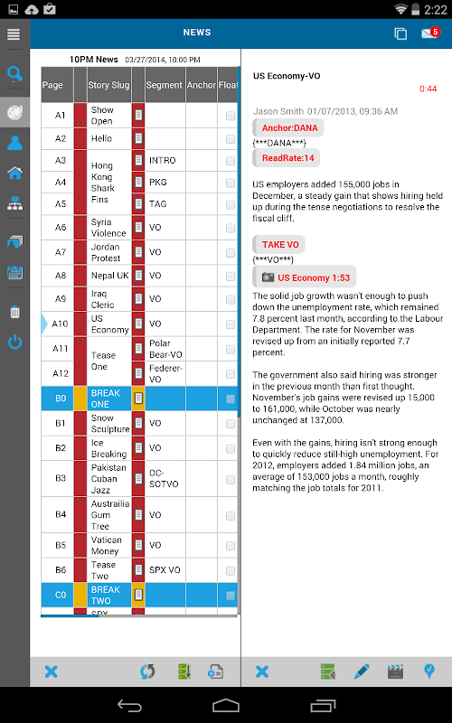 الأخبار لا يحدث في غرفة الأخبار. مع AP ENPS الجوال يمكنك أن تأخذ غرفة الأخبار الخاصة بك معك أينما تذهب. بعد رصد وتحديد المهام، rundowns، والأسلاك؛ كتابة وتحرير القصص؛ تحميل وسائل الإعلام؛ ورسالة زملاء العمل مع الهاتف الذكي، قرص، وكمبيوتر محمول أو كمبيوتر سطح المكتب. يتم عرض أي تغييرات يتم إجراؤها في غرفة الأخبار تلقائيا على الجهاز الخاص بك - لا حاجة لضرب "تحديث".