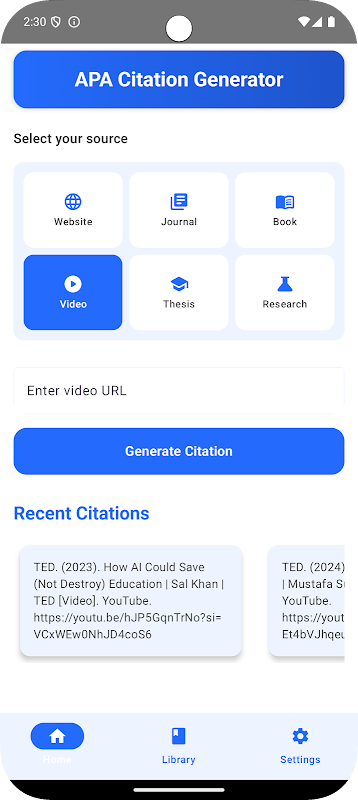 إذا كنت من مُحبي أدوات الاستشهادات الإلكترونية مثل مُولّد الاستشهادات APA من Scribbr وEasyBib، فإن تطبيقنا يُوفر لك نفس الراحة - مُباشرةً على هاتفك.