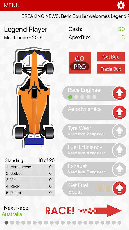 Formula racing fan looking for something a little different? APEX Race Manager is for you - it's an insanely addictive, unique simulation, strategy game where you visit all 21 rounds of the 2019 APEX Race Manager season.