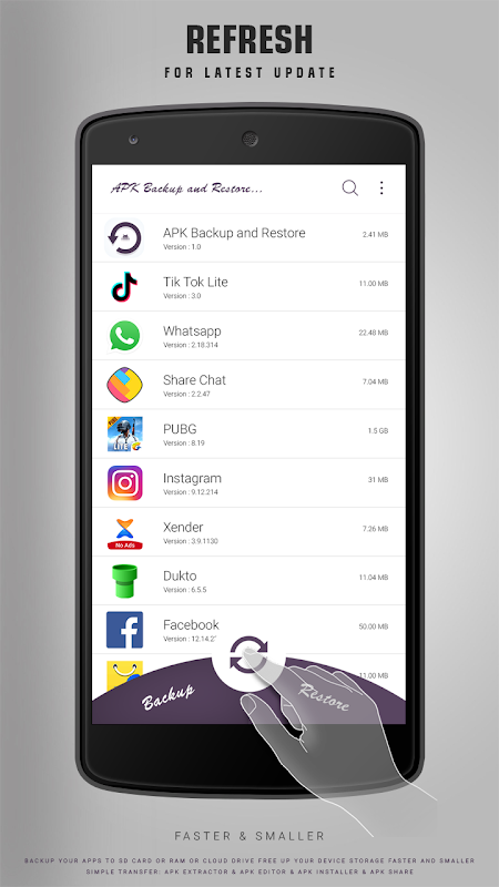 The fastest APK data backup and restore tool on Android phones. App Backup and Restore Tool - Backup your apps to SD card and cloud drive. FREE UP your Backup & Restore app used to backup and restore apps for android.