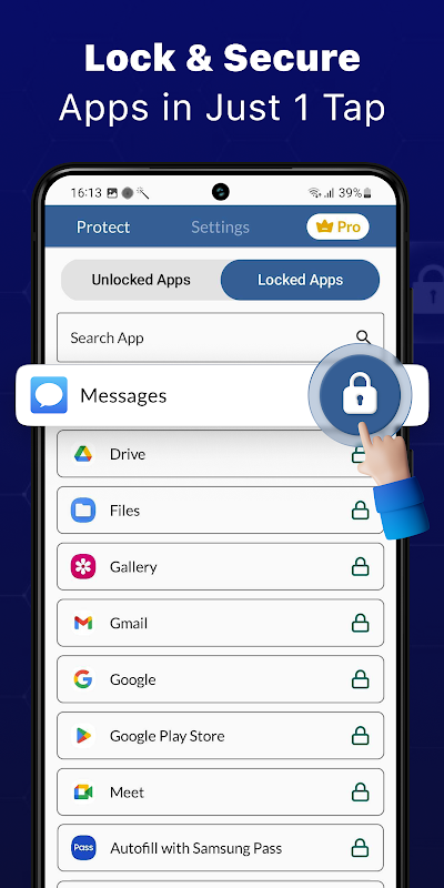 ✦ قم بقفل تطبيقاتك الاجتماعية المفضلة مثل WhatsApp وInstagram وFacebook بسهولة. حافظ على محادثاتك ومشاركاتك في مأمن من أعين المتطفلين.