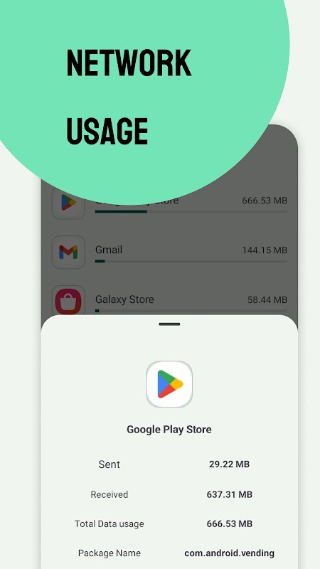 تفاصيل التطبيق: احصل على تفاصيل تطبيقاتك. عرض حجم التطبيق واستخدام التخزين واسم الحزمة والمزيد