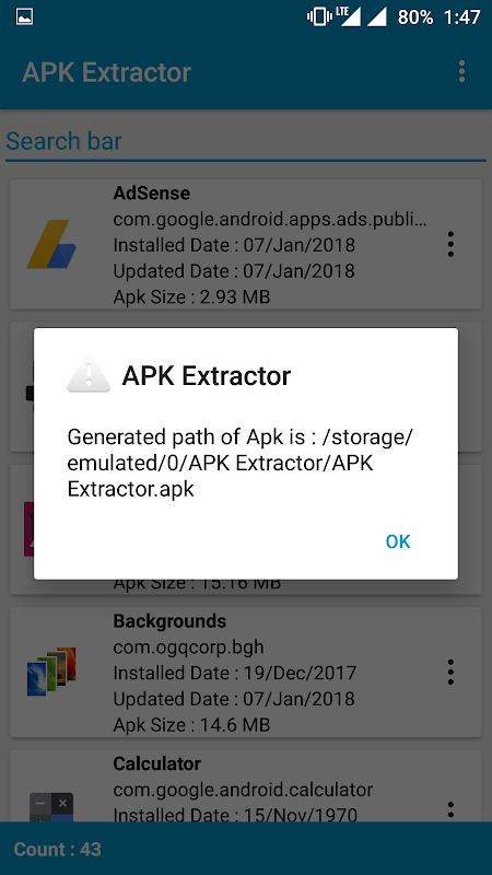 سوف يستخرج APK Extractor APK لجميع التطبيقات المثبتة في جهازك.