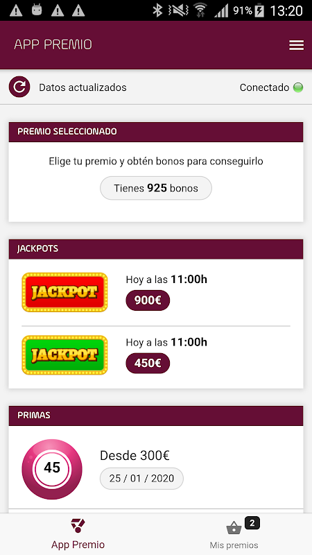 يجمع التطبيق المكافآت التي تحصل عليها في أي من مؤسسات شبكة Cirsa التي لديها ترويج نشط لتطبيق Prize.