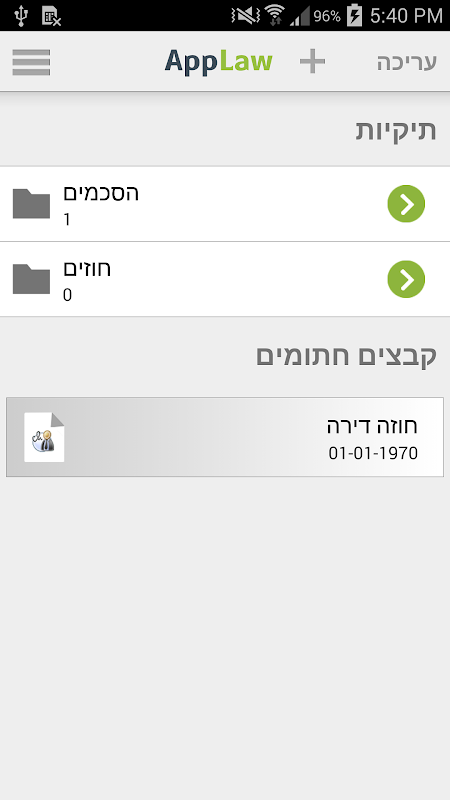 AppLaw מאפשרת יצירת תיקיות ושמירת מסמכים חתומים אלקטרונית בתיקיות.