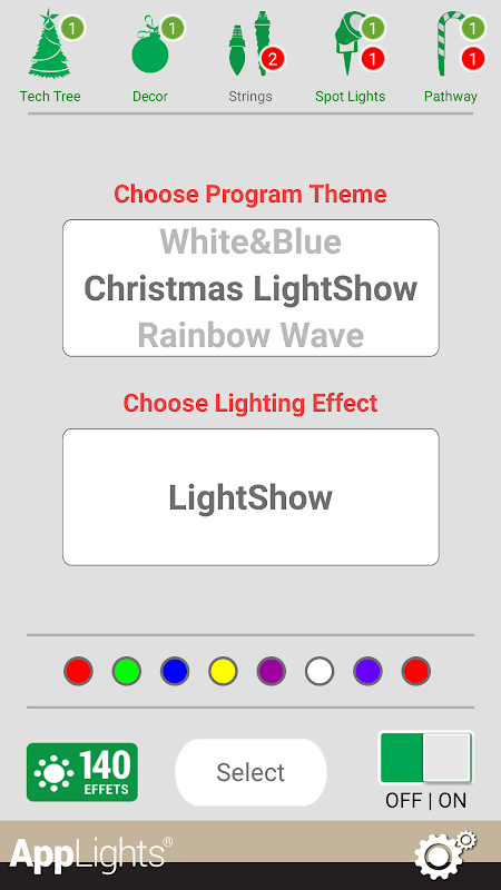 وضع على الابهار ضوء عطلة عرض والسيطرة عليه كل من الهاتف الذكي. التطبيق AppLights® يعمل حصرا مع AppLights® منتجات الإضاءة عطلة للسيطرة على عشرات من الآثار والألوان مباشرة من الهاتف الذكي. فإنه من السهل فائقة لإنشاء وإدارة. الاختيار من بين مواضيع متعددة عطلة، تقنيات الإضاءة وخيارات الألوان لكل منتج الإضاءة. مثالية لفي الهواء الطلق أو في الأماكن المغلقة تزيين عطلة، AppLights® يسلم أحدث التكنولوجيا في عطلة لتزيين العرف أن ننظر نسيم لإدارة.