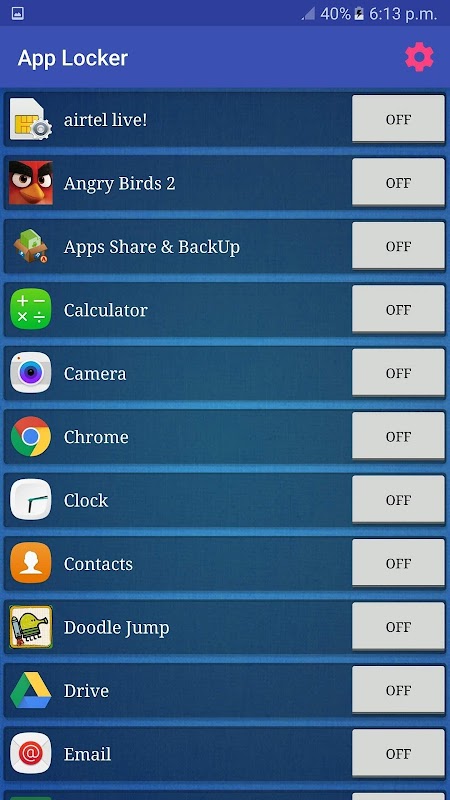 يوفر التطبيق خزانة اللعب مخزن قفل، وقفل SMS، قفل رسول، اتصالات قفل، وقفل إلكتروني، قفل Gmail، والفيسبوك قفل، وقفل تويتر، قفل ال WhatsApp، قفل الصور، معرض القفل، إعدادات قفل، يدعو قفل، والدردشة قفل، وقفل لعبة متصفح قفل، وخزانة التطبيق الفيديو، قفل المتجر، قفل إينستاجرام، قفل صور المدفن، قفل المدفن الفيديو، قفل الهاتف، وأية التطبيق الذي تريد قفل. حماية خصوصيتك. يحمي (أقفال) تثبيت تطبيقات باستخدام كلمة السر، ونمط حماية قفل وقفل التوقيع.