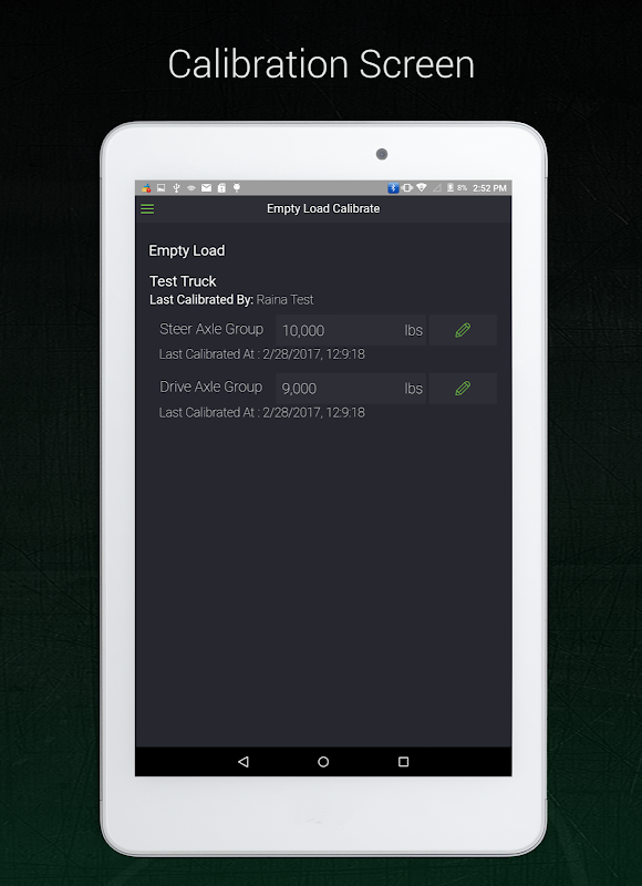 عرض وإرسال الأوزان مجموعة المحور، تعيين الوزن الفردي حد تحذيرات، وإضافة صور المعدات وأسماء لمحات شاحنة ومقطورة. أسرع العائد على الاستثمار، وAppWeigh إنشاؤها بعناية من قبل المهنية على متن نطاق والتكنولوجيا شاحنة المهنيين.