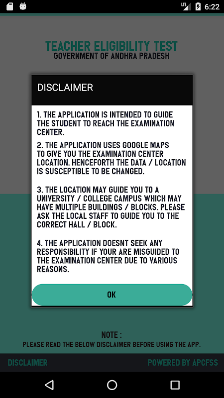 2. The application uses Google Maps to give you the examination center location. Henceforth the data / location is susceptible to be changed.