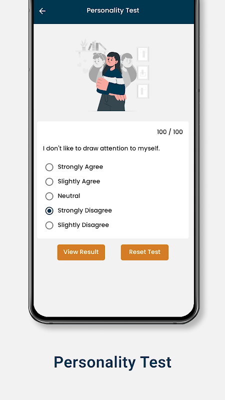 • اختبار الشخصية يفحص شخصيتك ويعطي النتائج بنسبة مئوية للانبساط والقبول والضمير والعصابية والانفتاح على التجربة.