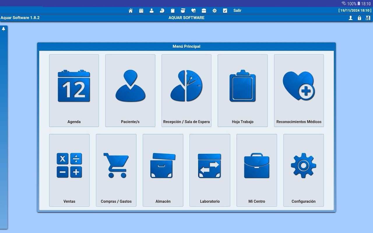 باستخدام تطبيق برنامج Aquar هذا لنظام Android، يمكنك الوصول إلى برنامج Aqua Software، وهو تطبيق لإدارة المركز الطبي، من جهاز لوحي.