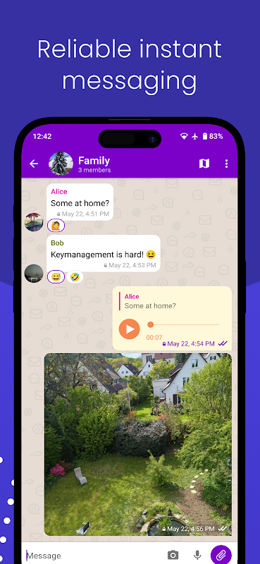 • مراسلة فورية موثوقة مع دعم متعدد للملفات الشخصية والأجهزة.