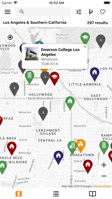 يمكن تصفية المباني المعروضة على التطبيق حسب الفترة التاريخية أو الوظيفة الرئيسية أو من خلال حقل البحث. أخيرًا ، يساعدك مخطط الطريق في العثور على طريقك إلى المبنى المحدد. تتوفر أيضًا أداة المفضلات ، مما يتيح لك حفظ مجموعة مختارة من الأعمال المفضلة للزيارة أو الاستشارة اللاحقة.