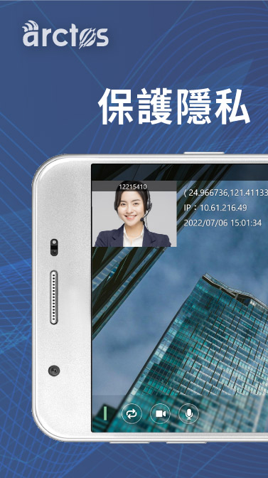 يتم توفير هذا التطبيق ، Arctos Client ، للشركات (بما في ذلك على سبيل المثال لا الحصر الصناعة المالية) لأداء خدمات الفيديو لعملائها.