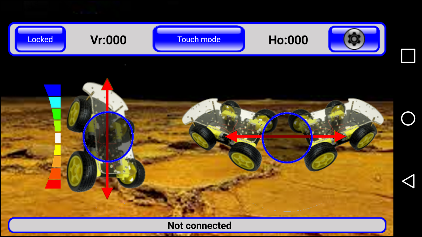 Two sliders for drive & steering with 2 fingers, multitouch in landscape mode.