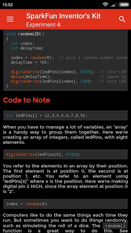 في هذا التطبيق يحتوي على إعلانات ويحتمل أن تكون عمليات الشراء في التطبيق، يمكنك الوصول إليها عبر الإنترنت المحتوى مجانا في https://learn.sparkfun.com/tutorials/sik-experiment-guide-for-arduino---v33.