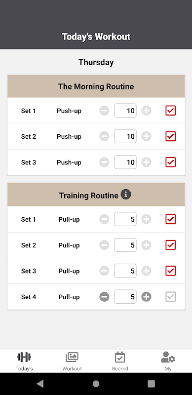 قم بأقصى عدد من مجموعات التدريب التي يمكنك إنجازها. راحة 60 ثانية بين كل مجموعة. تقوم بمجموعات التدريب حتى تفشل في أداء مجموعة التدريب المثالية. يمكن أن ينتهي هذا اليوم بأن يكون أطول يوم تدريب حيث تستمر في البرنامج لأنك ستجد أنه من السهل القيام بالكثير من مجموعات التدريب.