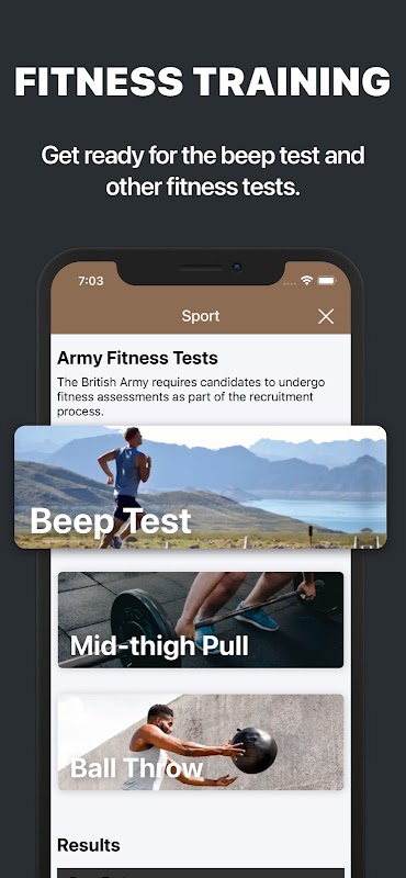 إخلاء المسؤولية: نحن لسنا تابعين لوزارة الدفاع البريطانية أو الجيش البريطاني أو أي وكالة حكومية أخرى. تم تصميم هذا التطبيق لمساعدة المرشحين على الاستعداد لاختبارات اللياقة البدنية والمعرفية. للحصول على معلومات رسمية، يرجى الرجوع إلى موقع وزارة الدفاع البريطانية هنا: https://jobs.army.mod.uk/how-to-join/army-assessment/soldier/