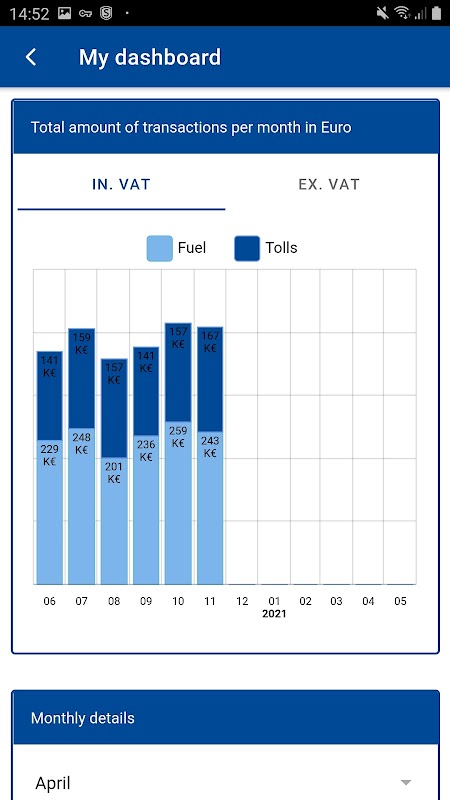 اجعل إدارة الأسطول أسهل - استشر فواتيرك وجميع المعاملات التي تتم باستخدام بطاقاتك وشارات الرسوم. راقب رصيدك وتحقق بسهولة من استهلاكك الشهري على لوحة القيادة الخاصة بك: استهلاك الوقود ، مدفوعات الرسوم ، أفضل 10 محطات من أكثر المحطات استخدامًا ...
