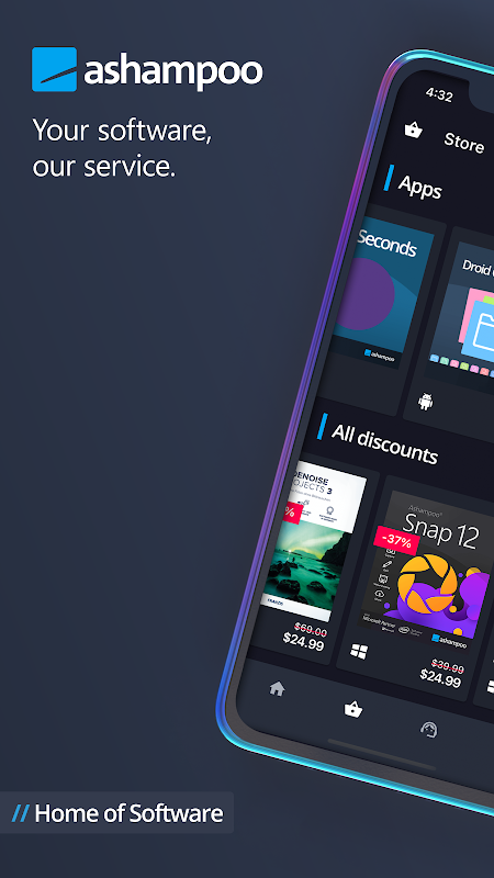 Ashampoo Mobile هو مركزك الرقمي لكل شيء Ashampoo! تخيل خدمة تقوم بفتح جميع برامجك وتحديثها وتوفر أقصر طريق للدعم الفني. هذا هو ما يدور حوله Ashampoo Mobile - وأكثر! يمكنك أيضًا الوصول الفوري إلى مفاتيح الترخيص الخاصة بك وبرنامج Ashampoo المجاني وأفضل الأسعار في السوق دائمًا. الأخبار ومقالات المدونات ومقاطع الفيديو أصبحت الآن على بعد بضع نقرات فقط - مجانًا، الآن وإلى الأبد!