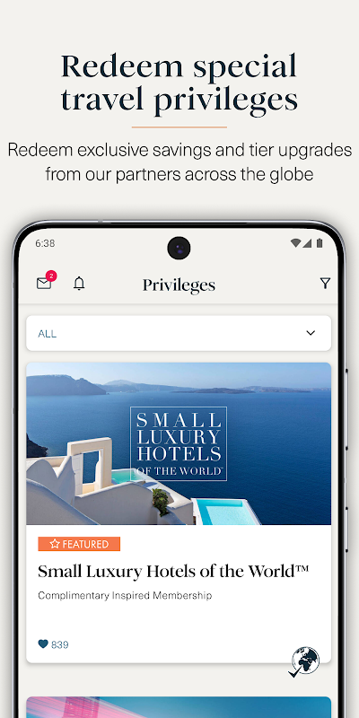 استمتع بامتيازات السفر وأسلوب الحياة الحصرية من الشركاء الدوليين ، مثل ترقيات الحالة والخصومات والامتيازات من الفنادق وشركات تأجير السيارات أو العلامات التجارية الشهيرة للسفر وأسلوب الحياة.