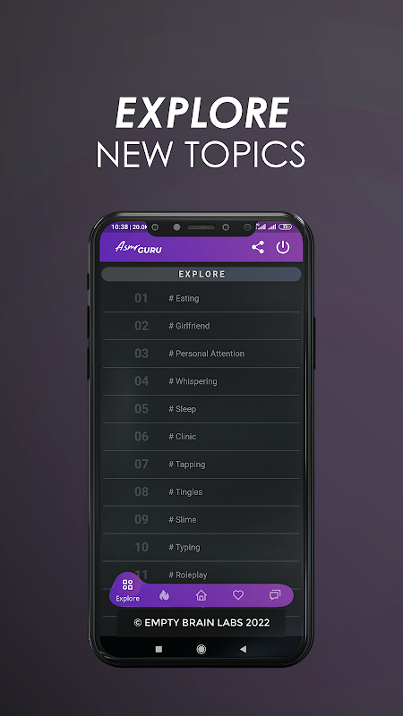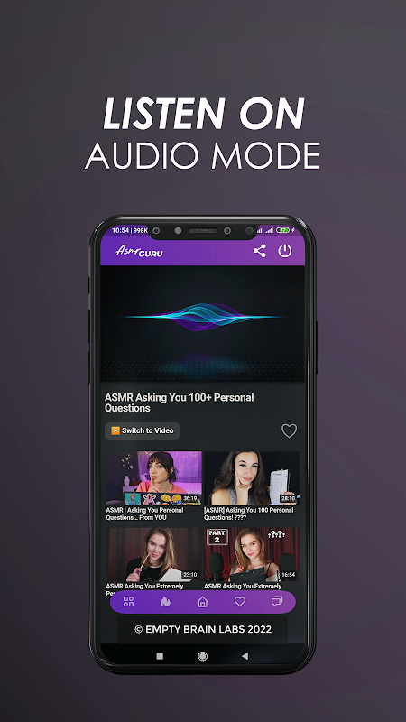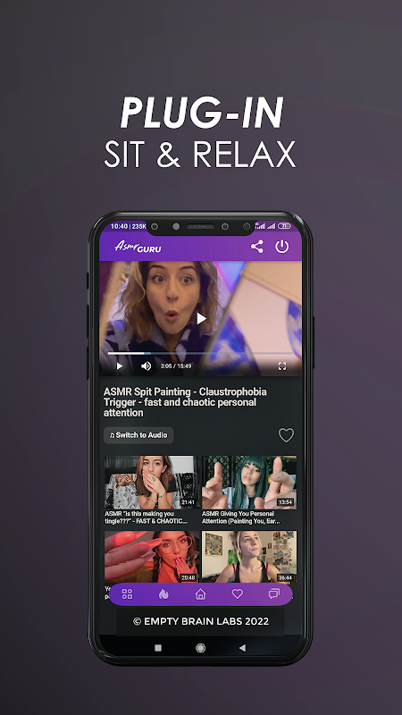 We have a collection of more than 50,000 ASMR clips in this application with audio and video mode which you can listen or watch as per your wish. There are varieties of topics and types of ASMR which can be switched to anytime. We have a trending section where the most watched content and topics will be listed so you can follow the same if you wish.