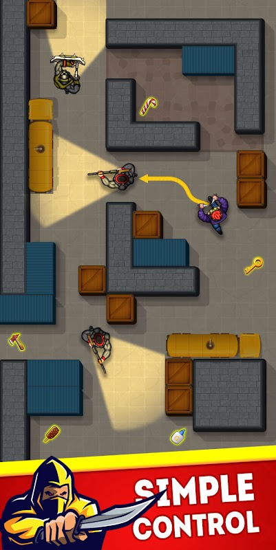✨ At the same time use the surrounding obstacles to hide from the flashlight, evade enemies who are chasing you. The hunters lurk everywhere and are armed with automatic shot gun, so you must stay alert and keep a safe distance from those aggressive hunters. Each hunter destroyed you have the opportunity to get more gold to upgrade new skills to give you more speed and power to easily cross the level. Also on the way to destroy the hunter, you should pay attention to pick up the keys and items to unlock valuable rewards.