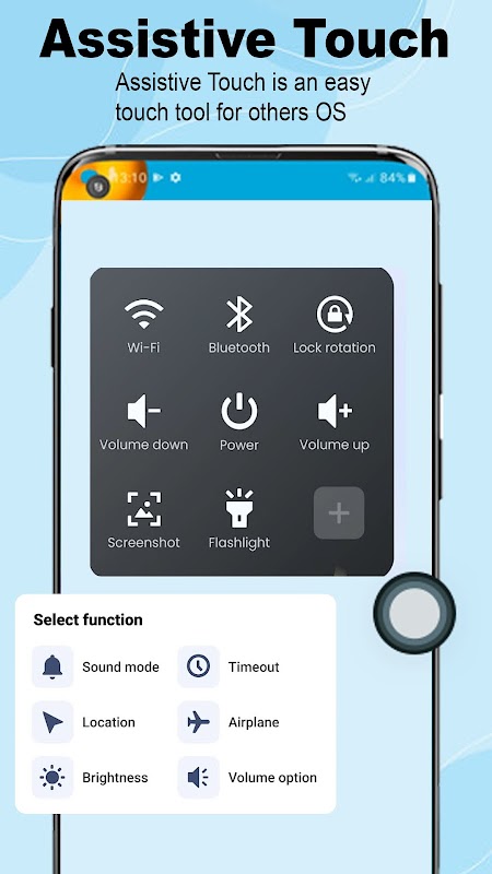 تم تصميم Assistive Touch لتبسيط تجربة Android لديك، حيث يضع زرًا عائمًا قابلاً للتخصيص على شاشتك، مما يوفر وصولاً فوريًا إلى عدد لا يحصى من الوظائف. سواء كنت بحاجة إلى ضبط مستوى الصوت، أو التقاط لقطات الشاشة، أو تبديل إعدادات Wi-Fi، كل ذلك بنقرة واحدة فقط.