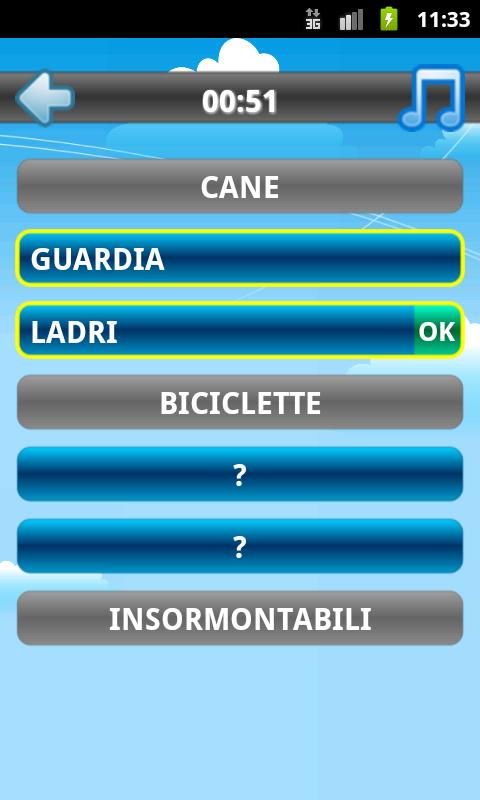 Nella nuova modalità "incastro" bisogna indovinare le parole a coppie di due, conoscendo la prima, l'ultima e quella centrale.