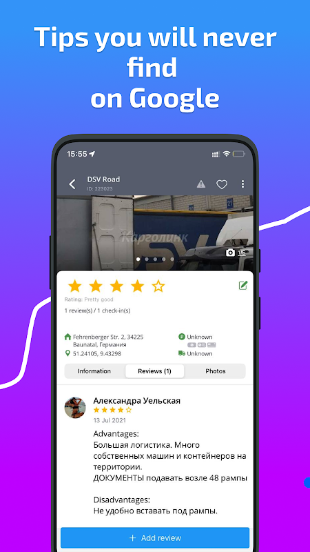 يوفر سائقو الشاحنات أنفسهم معلومات حول أماكن وقوف السيارات المجانية والمقاهي غير المكلفة لتناول طعام الغداء من خلال المراجعات.