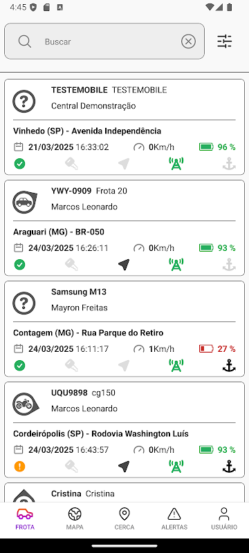 - الحصول على لمحة عامة عن الأسطول وحالة اتصالاته