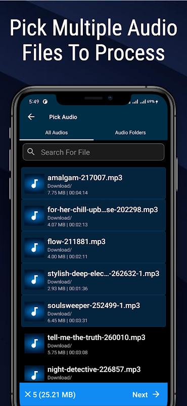 يساعدك برنامج دمج الصوت داخل التطبيق على ضم عدة ملفات صوتية في ملف صوتي واحد. يمكنك ضم أي عدد من ملفات mp3 في ملف واحد. يسمح لك برنامج دمج الصوت أيضًا بحفظ إخراج برنامج دمج ملفات mp3 بتنسيقات صوتية شائعة.