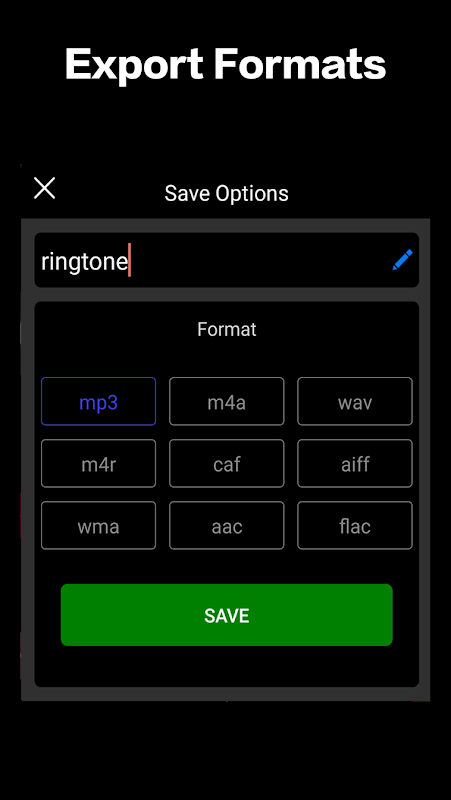 ليس فقط أداة قص mp3 ، ولكن أيضًا محرر mp3 ، وقاطع نغمات الرنين ، ومحرر الصوت ، ومقطع الصوت ، وصانع النغمات ، ومحرر نغمات الرنين ومنشئ نغمات الإشعارات.