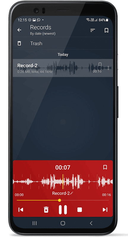 Voice recorder - Audio recorder is the Best recorder for sound recording with high quality (DVD like quality), stereo and long as well as short sessions without time limit. Smallest app size.