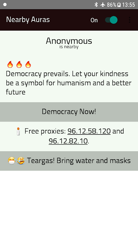 ◉ During street protests Aura allows to disperse messages even if the internet or phone network is disabled