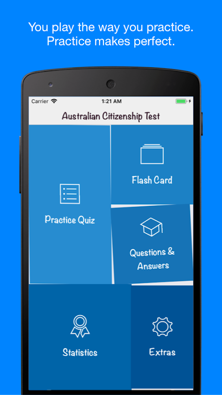 يستخدم هذا التطبيق لدراسة وإعداد لكم ل"المواطنة اختبار الاسترالي". تم تصميم اختبار المواطنة لتقييم ما إذا كان لديك المعرفة الكافية من استراليا ومسؤوليات وامتيازات المواطنة الاسترالية. اللغة الإنجليزية هي اللغة الوطنية. التواصل باللغة الإنجليزية تساعدك على لعب دور أكثر نشاطا في المجتمع الأسترالي. انها تساعدك على الاستفادة الكاملة من التعليم والعمل وغيرها من الفرص استراليا لهذا العرض. ويتكون الاختبار الفعلي من عشرين أسئلة الاختيار من متعدد. يمكنك استخدام هذا التطبيق لممارسة الإجابة على نفس الأسئلة متعددة الخيارات التي قد تظهر على اختبار المواطنة الحقيقية، أو ببساطة فهم المزيد عن استراليا. حافظ على الممارسة تجعل من الكمال!