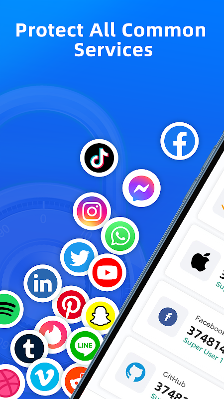 يدعم تطبيق المصادقة التحقق بخطوتين لجميع الخدمات عبر الإنترنت، بما في ذلك المنصات الشهيرة مثل Facebook وInstagram وGoogle وTwitter وMicrosoft وSalesforce وWhatsApp وOutlook وAmazon وDiscord وWalmart وPlayStation وSteam وBinance وCoinbase وCrypto.com والعديد من المنصات الأخرى.