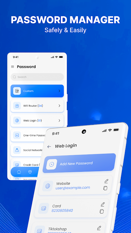 تدعم هذه الميزة حفظ كلمات المرور وإدارتها من خلال فئات واضحة مثل جهاز توجيه Wi-Fi وبطاقة الائتمان والحساب البنكي وحساب البريد الإلكتروني وكلمة المرور على الويب والمزيد.