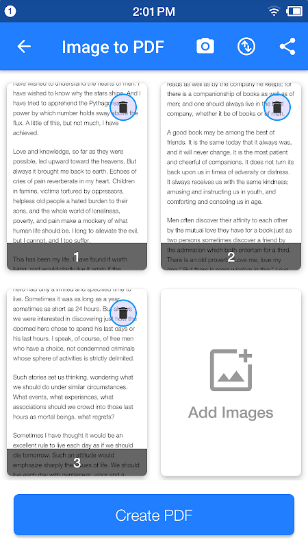 - الكاميرا: استخدم الكاميرا لمسح الكتب والصور وملفات PDF والمستندات وما إلى ذلك.