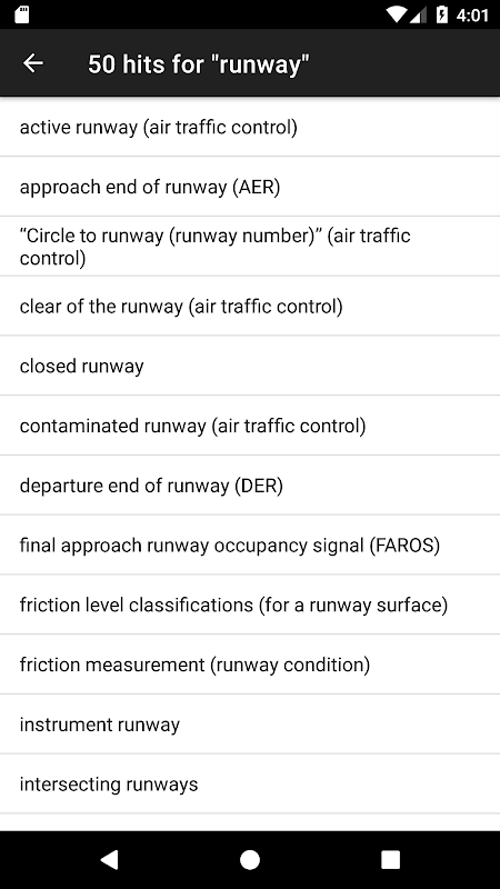 • يتم تعريف المصطلحات أكثر من 11،000 الطيران المختصرات، والمختصرات، والعبارات.