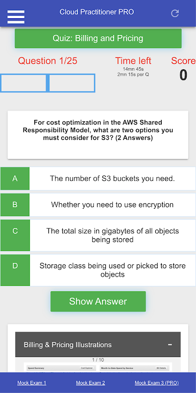 ملاحظة وإخلاء المسؤولية: نحن لسنا تابعين لـ AWS أو Amazon أو Microsoft أو Google. يتم وضع الأسئلة معًا بناءً على دليل دراسة الشهادات والمواد المتاحة عبر الإنترنت. من المفترض أن تساعدك الأسئلة الموجودة في هذا التطبيق على اجتياز الامتحان ولكنها غير مضمونة. نحن لسنا مسؤولين عن أي امتحان لم تجتازه.
