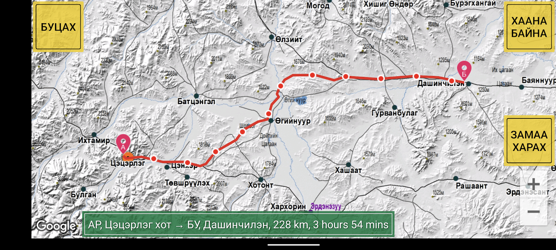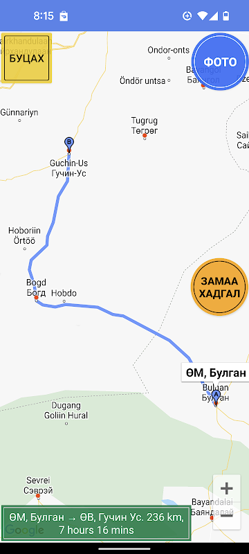 يوفر التطبيق الخرائط والطرق والمراكز الإدارية المنغولية للمسافرين. يتضمن خرائط غير متصلة بالإنترنت تعتمد على نظام تحديد المواقع العالمي (GPS) ومعلومات مفيدة أخرى.
