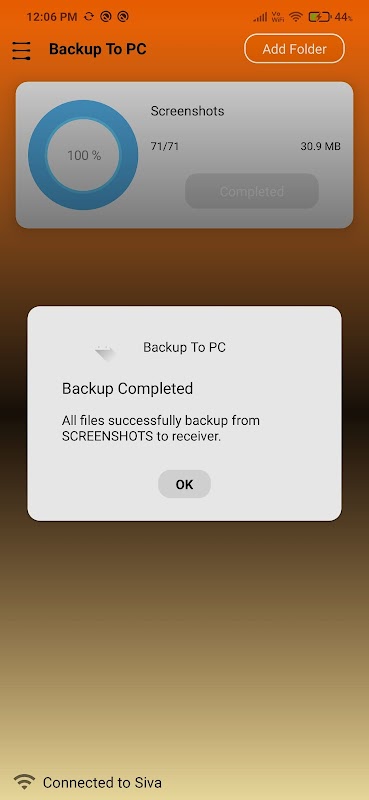 * اختر مجلدًا لنسخه احتياطيًا في التطبيق ، سيعرض جهاز الاستقبال المجلد المختار.