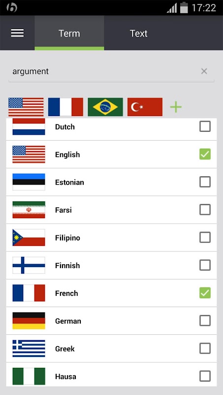 6. دعم ترجمة النصوص الكاملة - انتقل من وضع ترجمة الكلمات (Term) إلى ترجمة النصوص (Text) في أي وقت.