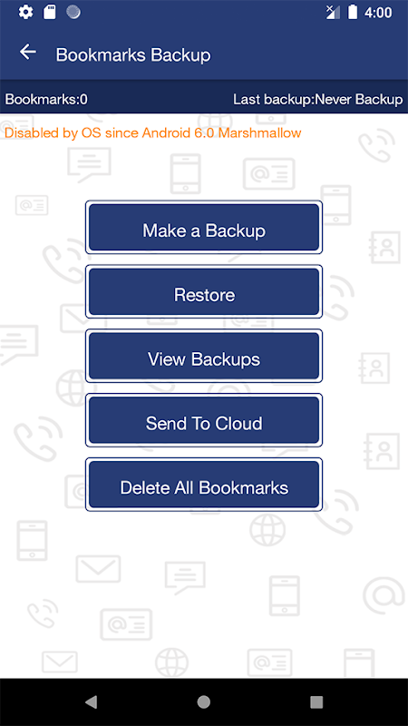 Welcome to Apps, Contacts, Bookmarks Fast Backup and restore application : The fastest data backup and restore tool on Android phones!