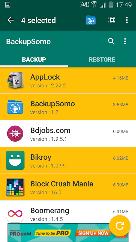 Backupsomo تساعد المستخدم على اتخاذ احتياطية وإيثارا للسلامة تطبيقات الجوال الهامة.